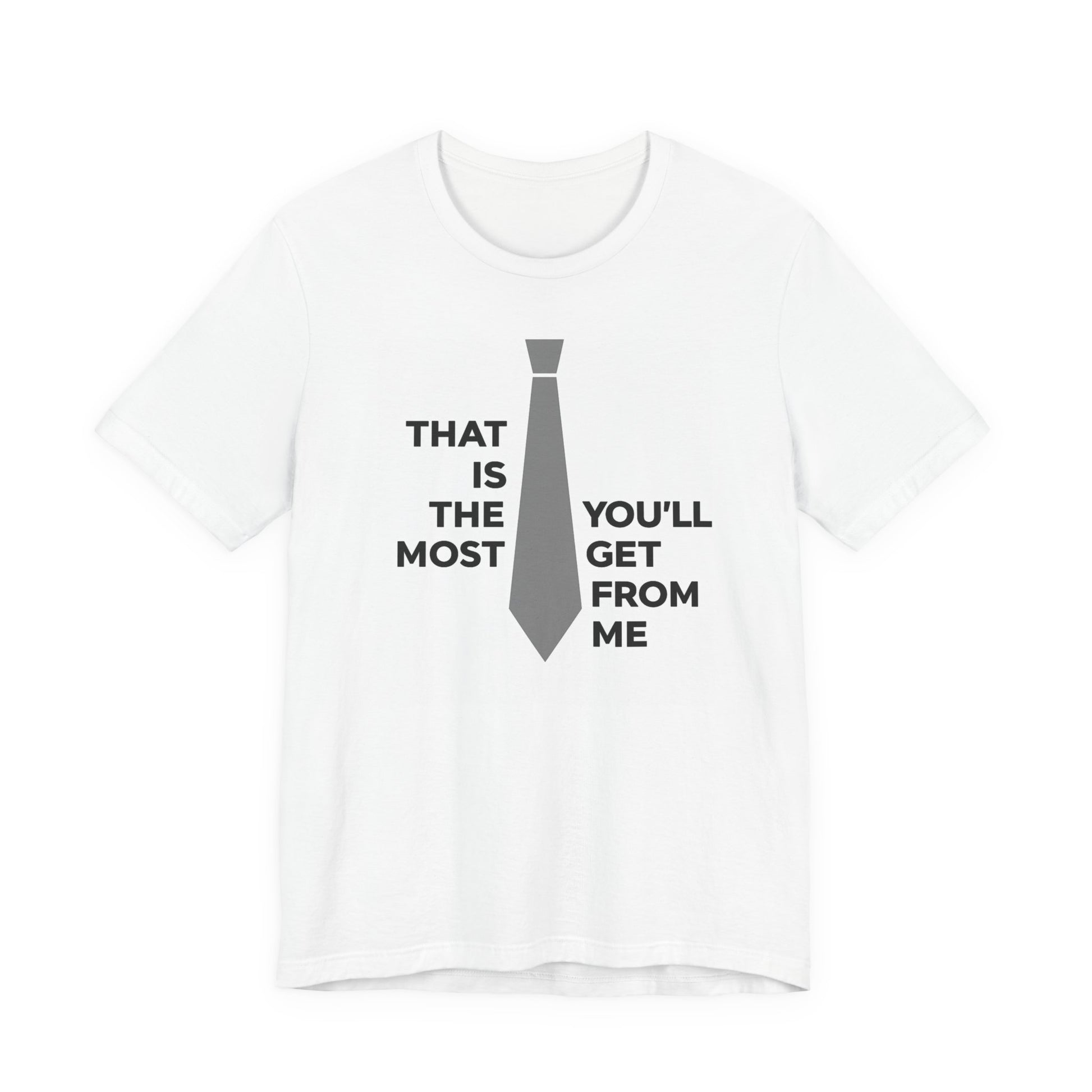 This shirt features a minimalist tie graphic - a lighthearted way to dress up without really dressing up. Perfect for anyone who enjoys humor with a simple, modern look.